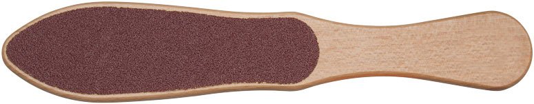 Two-sided, coarse and medium grit, Wooden handle foot scraper, stubborn calluses,  for smoothing rough, dry skin.  Cushioned abrasives eliminate friction burn.