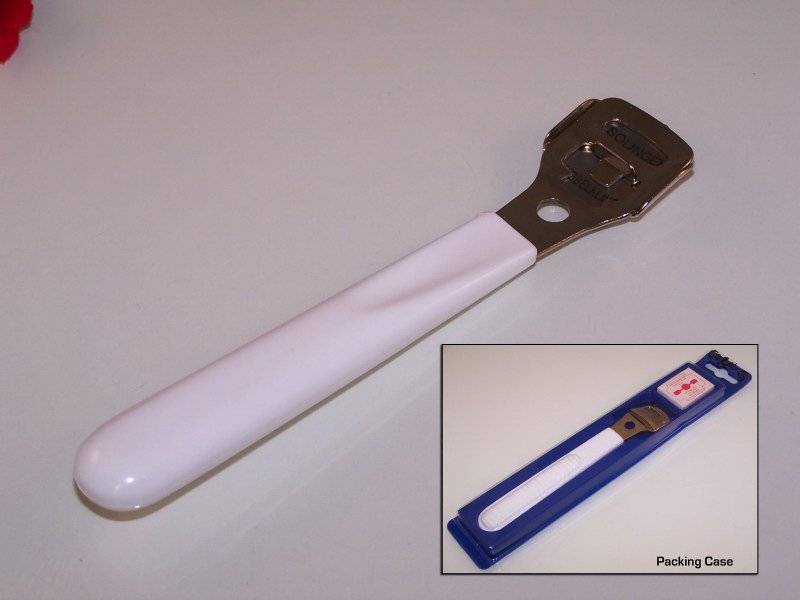 Product DescriptionCorn plan- Corn Remover14 cm This durable,light weight and rustproof plane is easy and effortless to use. Remove unsightly corns and calluses easily.One blade,removable and adjustable. |
