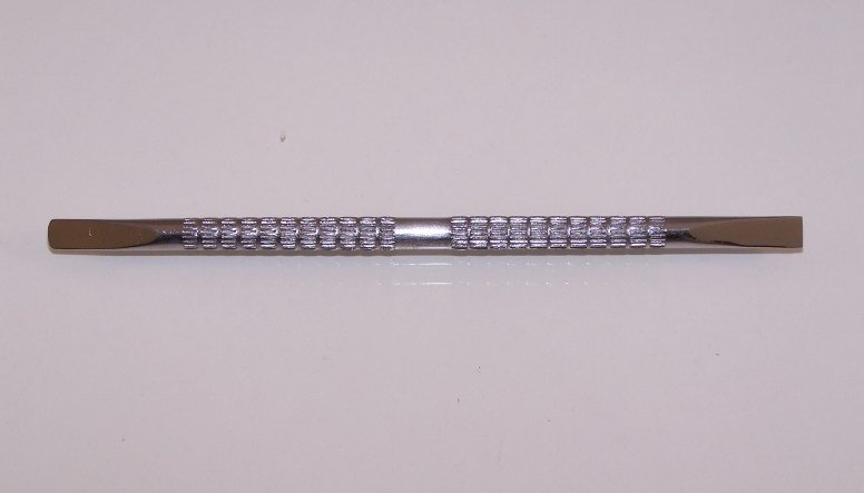 Product DescriptionCuticle pusher with Nail cleaner Japanese Stainless steel cuticle and pedicure pusher used to push the cuticle back without scratching the nail. Textured body will not allow the pusher to slip out of your hand. |