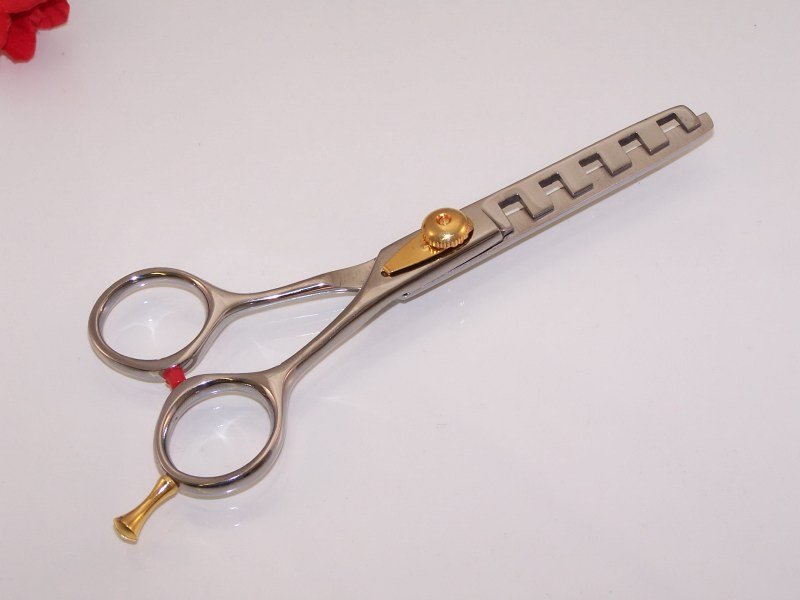 Product DescriptionHair Thinning Scissors 5.5" Hair Thinning Scissors, Features to suit every cutting style. -Ensure superior quality and performance., Convex Edge, Hollow Ground, triple Hand honed, Razer sharp blade, Smooth cutting, Soft purple finger rings, black silencer, 440c Japanese stainless steel, Rockwell 58-62 Rc, laser imprinted logo. Mirror Polished, Golden Vario screw for individual adjustment of the tension, 7 teeth, for flexible hairstyles which fall softly in gentle graduations. Fixed finger rest. Gold plated screw nut, permanent finger rest one sided thinning blade with 36 teeth, polish finish.Adjustable hock available size: 5.5" 6" 7" |