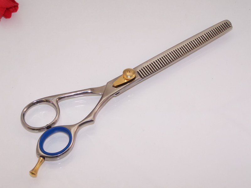 Product DescriptionJ2 Thinning Scissors 6" Smooth and gentle blending experience. Convex Edge, Hollow Ground, triple Hand honed, Razer sharp blade, Smooth cutting, Soft purple finger rings, removable finger rests, black silencer, 440c Japanese stainless steel, Rockwell 58-62 Rc, laser imprinted logo. Mirror Polished, Golden adjustable clicking screw with plate, 32 teeth with microserration. Gold plated screw nut, permanent finger rest one sided thinning blade with 36 teeth, polish finish.Adjustable hock available size: 5.5" 6" 7" |